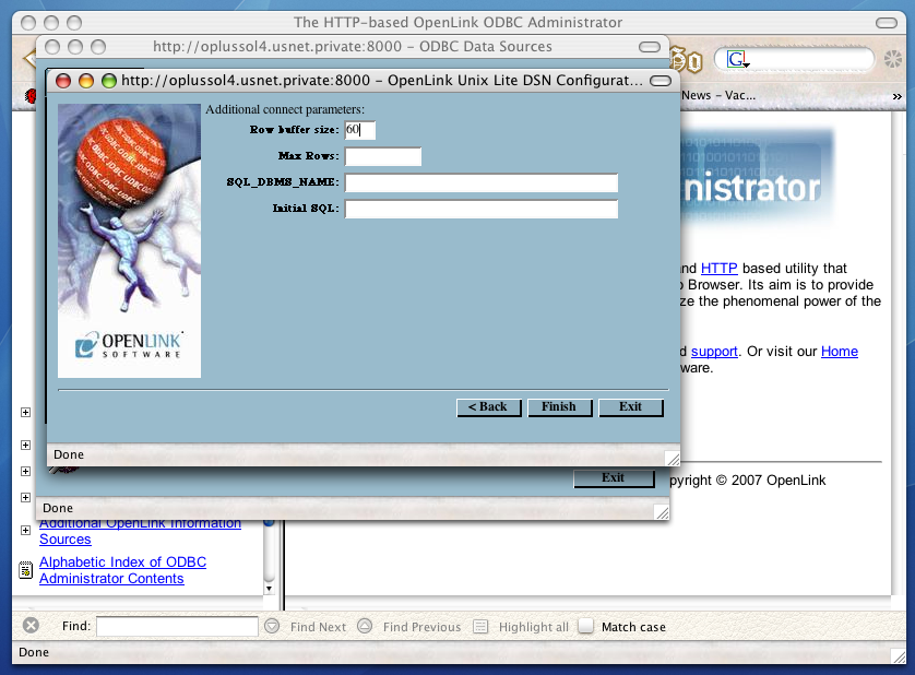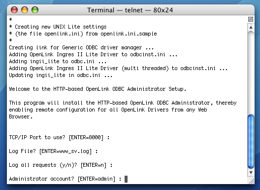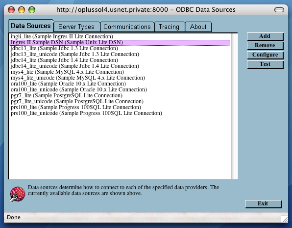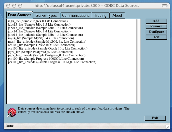 Run the following command to start your HTTP-based iODBC Data Sources Administrator: ./iodbc-admin-httpd.sh start