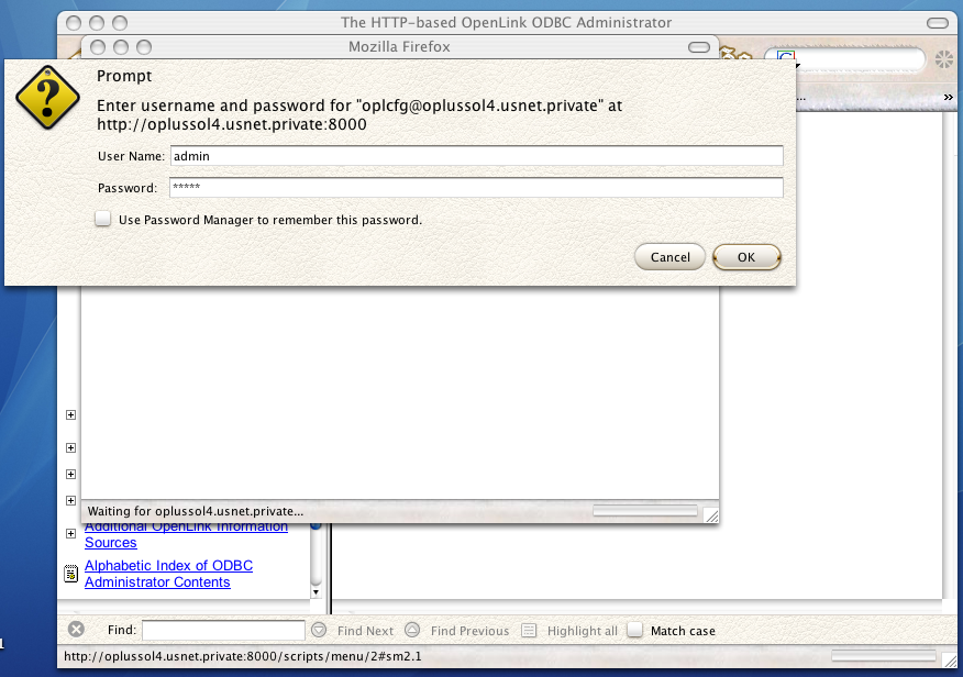 You can change the iODBC Data Source Administrator's default username from "admin." This is the name that you will need to login to