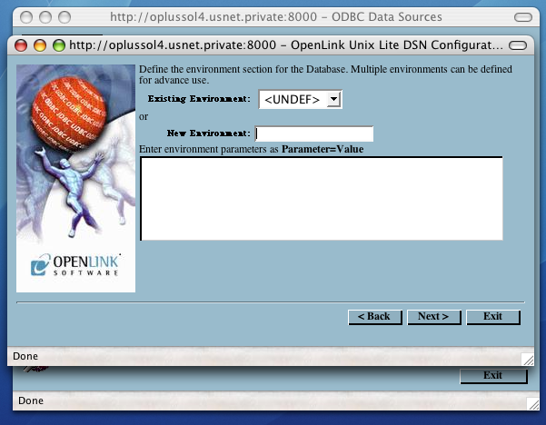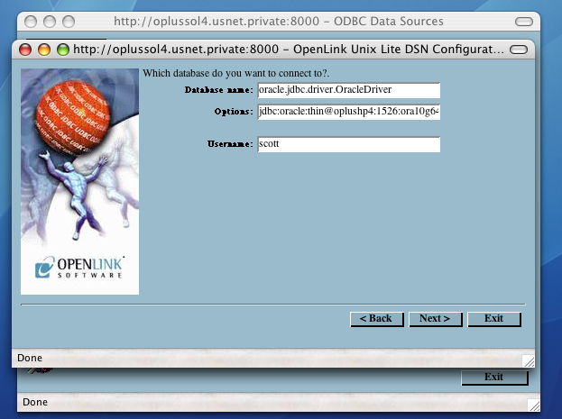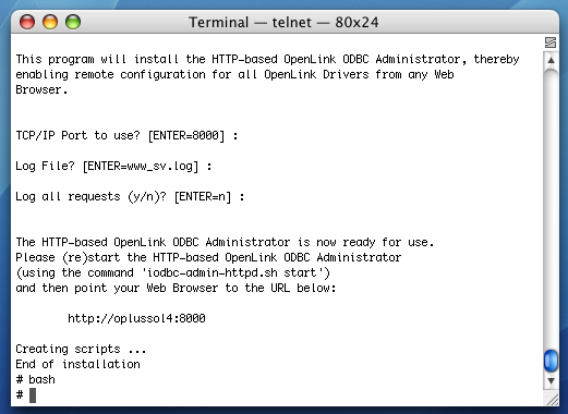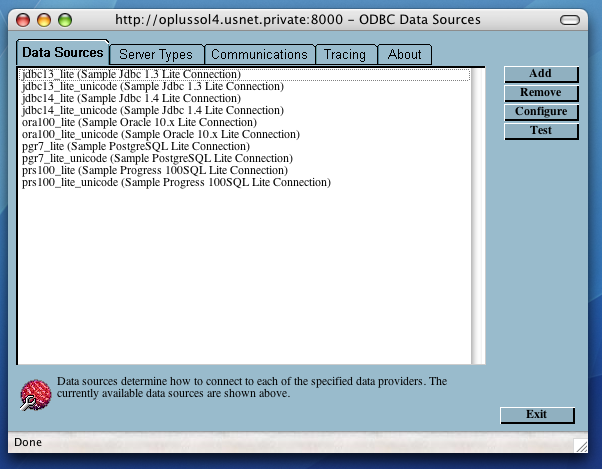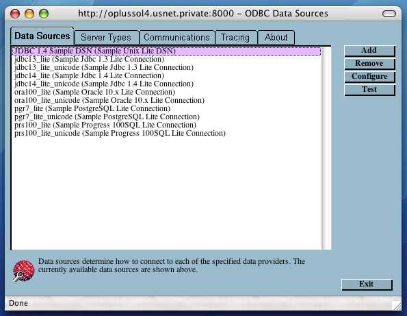 - Run the following command to start your HTTP-based iODBC Data Sources Administrator: ./iodbc-admin-httpd.sh start