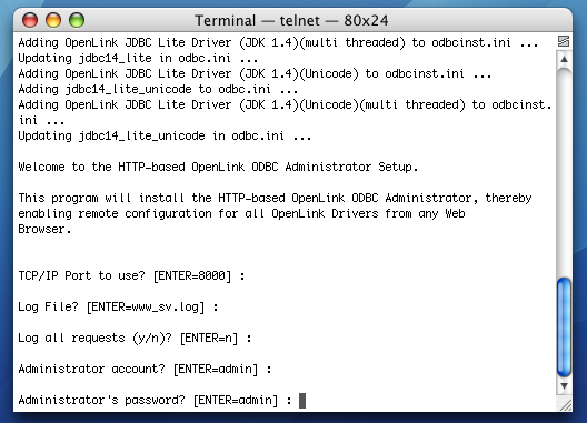 - You can change the iODBC Data Source Administrator's default username from "admin." This is the name that you will need to login to