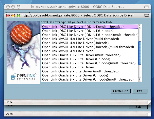 OpenLink ODBC to JDBC Bridge Driver (multi-threaded). Then, click Create DSN.