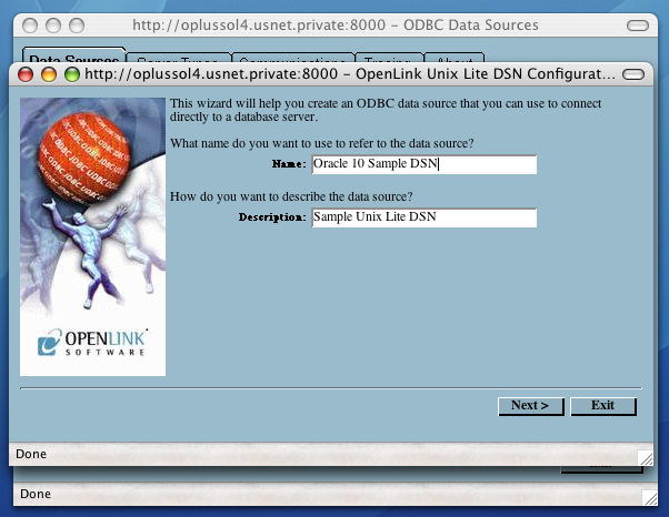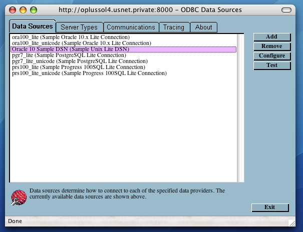 The documentation below assumes you are using the HTTP-based iODBC Administrator to configure your DSN. You may prefer to manually configure Oracle ODBC connections.