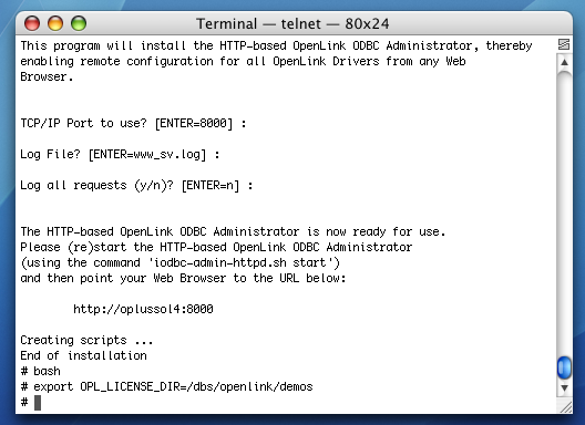 - Navigate to the $OPENLINK_INSTALL directory, e.g., /opt/openlink/.