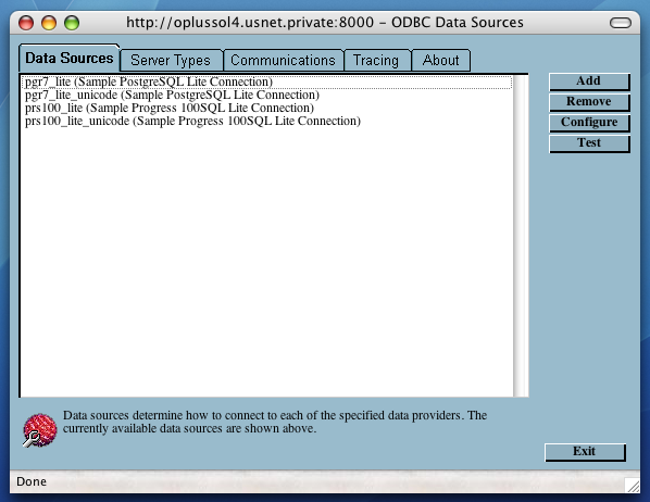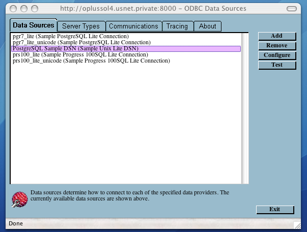 - Run the following command to start your HTTP-based iODBC Data Sources Administrator: