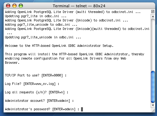 - You can change the iODBC Data Source Administrator's default username from "admin." This is the name that you will need to login to