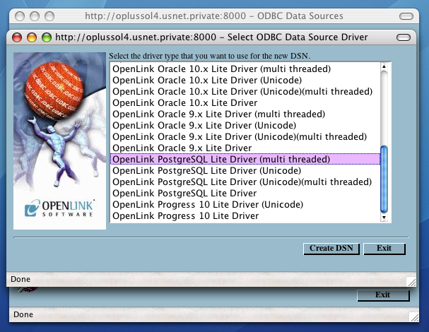 OpenLink PostgreSQL driver (multi-threaded). Then, click Create DSN.
