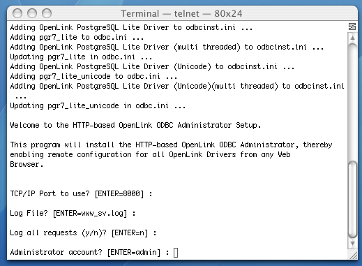 - You must choose a TCP port on which to run your HTTP-based iODBC Data Sources Administrator.