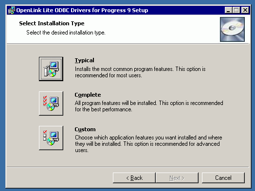 7. Choose from the Typical, Complete, and Custom installation types.