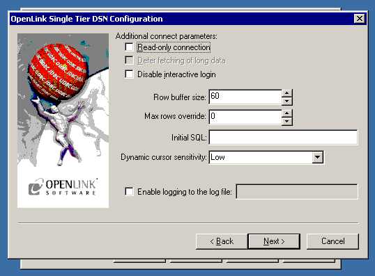 • Disable Autocommit — Changes the commit behavior of the OpenLink driver. The default mode is AutoCommit (box unchecked).