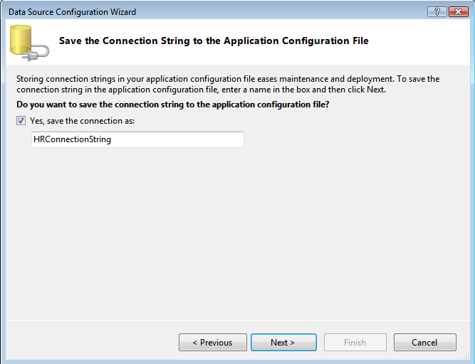 In the Data Source Configuration Wizard dialog Choose your Data Connection page, select the New Connection button.