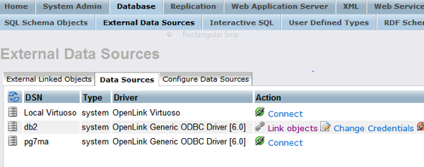 The Link process is now complete enabling the tables to be queried as if part of the Virtuoso Schema.