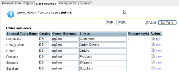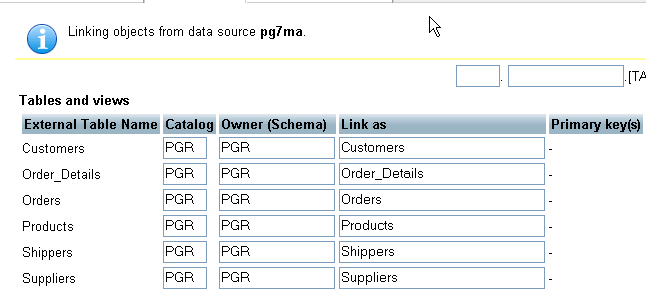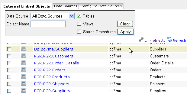 On completion of the Link process, the tables will be displayed in the External Linked Objects tab.