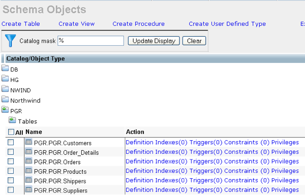 The tables can also be viewed as part of the Virtuoso SQL Schema Objects under the PGR catalog name.